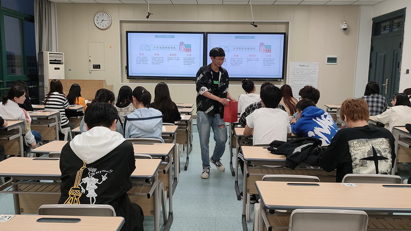 活动中,同学们在便签上写下自己的烦恼和焦虑,由班干们认真阅读每一位同学的倾诉后,用心写下充满鼓励话语的便签返还给大家。也有班级组织同学们共同绘制了一幅“绿色传说”的画,并带领同学们开展心理健康趣味小测验,不仅展现了学生丰富想象力,也有助于同学们了解某种行为的心理意义。活动的最后,为了感谢每位参与者的真诚分享,各班级为大家送上了一份特别的礼品。这份小小的礼物,承载着对同学们关爱与祝福