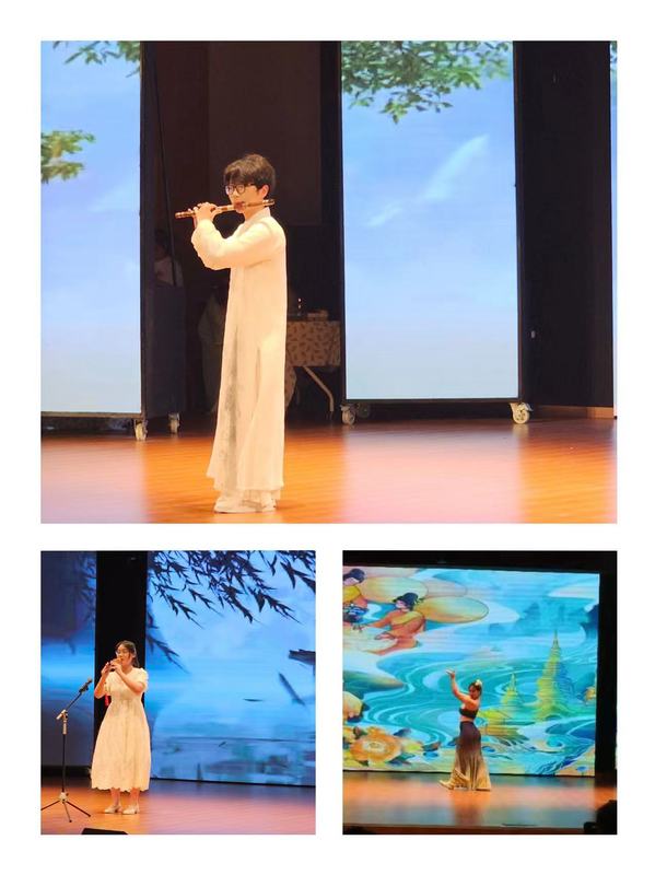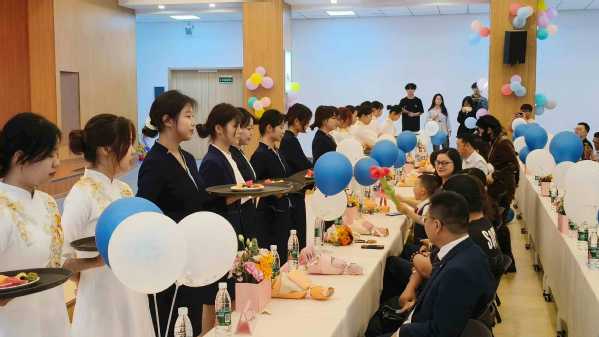 此次展演活动包含酒店、旅游专业技能展演和冷餐会两个部分。酒店专业技能展演有酒店工服秀、职业礼仪操、托盘舞、调酒、插花、茶艺等相关技能展示。旅游专业技能展演有拉丁舞、藏族舞、竹笛、傣族舞、葫芦丝等才艺展示。冷餐会内容涵盖了嘉宾迎送、嘉宾餐中服务、果盘制作、伴手礼制作、会场布置等相关技能展示,旨在通过让同学们“沉浸式”现场操作,将《宴会餐饮》《酒店客房服务》《酒店礼仪》《酒店技能实训》等相关理实课程、旅游技能大赛备赛等学习成果进行集中展示和运用,促进一二课堂同向同行。