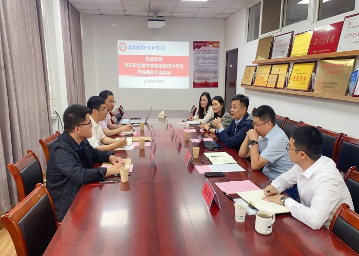 为学习借鉴兄弟院校在创建全国高校党建样板支部工作中的创新做法、先进经验,5月30日上午,伟德官网信息技术学院党总支书记、院长疏国会,党总支委员、副院长熊祖涛赴安徽国防科技职业学院进行考察学习。该校党委委员、信息技术学院院长沙有闯热情接待了考察组一行,并主持了座谈会。该校纪委副书记杨庆颖,信息技术学院党总支书记王胜、党总支副书记杜洪宇、宣传委员马士君等参加了座谈交流。