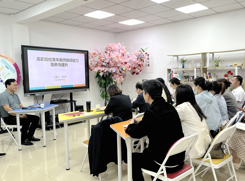 在讲座中,陈树副教授结合自身多年的教科研经验,从心理健康教育专业角度出发,强调了高职院校青年教师开展教科研工作的必要性和重要性,并为如何培养与提升高职院校青年教师教学科研能力提供了有效的方法和策略指导。他提出,青年教师积极开展教科研工作,不仅能够促进产教学融合,推动学科专业发展,同时也能进一步提升高校的学术声誉和影响力,推动地方经济发展,社会进步。他针对当前高职院校青年教师存在的缺乏科研信心和团队合作精神,研究方向不明确等现象提出了有效的改进措施。他建议青年教师积极掌握学术动态,结合自身专业基础确定研究方向;他鼓励教师们积极参与科研活动,培养团队协作精神,克服科研畏难情绪,主动熟悉高校科研体系,在实践中不断探索、提升自我。整场讲座内容丰富、深入浅出、思路清晰、逻辑严密,具有很强实用性和启发性。