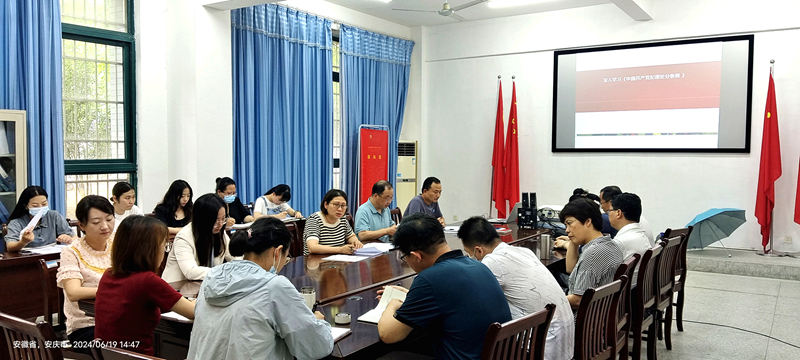 6月19日下午,马克思主义学院在三号教学楼106会议室举行专题学习会,学习党的政治纪律和组织纪律相关内容。马克思主义学院党总支书记余锋主持会议并讲授题为《深入学习<中国共产党纪律处分条例>》的党课,全体党员教师参会。