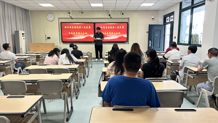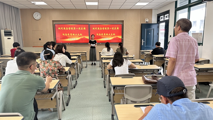 6月26日中午,现代商务院第一党支部和第二党支部分别在三号教学楼411和415教室召开预备党员转正大会,会后又举行毕业生党员座谈会。
