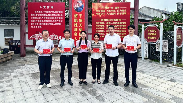 在邓稼先故居,大家认真聆听了邓稼先生平事迹,观看了大量图文资料和实物展品,实地感受“两弹一星”精神,深切感受到老一辈科学家对党的赤胆忠心。全体党员庄严地举起右手,重温入党誓词,共同回顾入党宣誓时的庄严承诺和初心使命,进一步坚定了对党忠诚的信念。