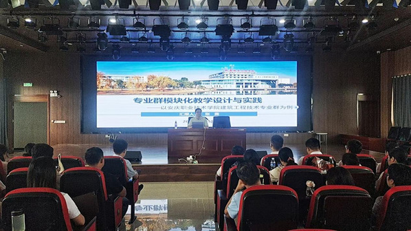 9月5日,受安徽安庆技师学院邀请,建筑工程学院副院长张赛赴该校作题为《专业群模块化教学设计与实践》的讲座,该校全体教师参加学习。