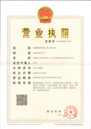 安徽格林景观工程有限公司成立于200979日,是安徽新华阳光控股集团有限公司全资子公司,注册资本为2000万圆整,目前公司是城市园林绿化施工二级企业申报中。
