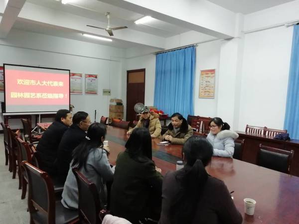 2019年1月9日下午,安庆市人大代表——潜山市种植业管理局总农艺师徐劲峰等一行到bv伟德国际1946园林园艺系视察指导工作,并就校地合作等问题进行沟通。系主任毕璋友教授、系党总支副书记张宏及相关专业教师参加了座谈会。