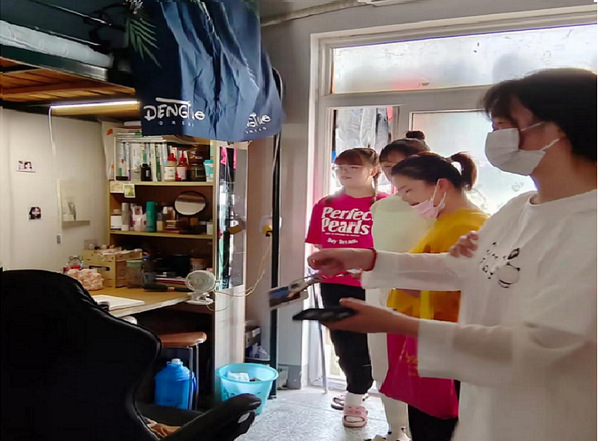 活动中,全体党员进入结对联系的寝室,就寝室卫生、寝室文化建设、是否存在安全隐患等问题进行了检查,并向同学们传达学校的疫情防控政策,表示“疫情阻挡出行的脚步,不阻挡学习进步的脚步”,鼓励同学们安心学习,快乐生活。
