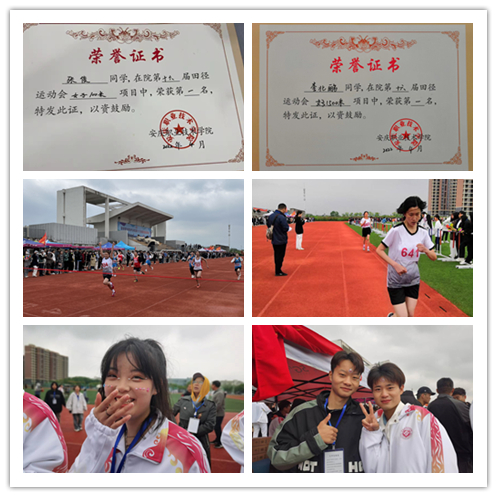此次运动会我院共有58名同学参加了20个项目的角逐。运动健儿们秉持友谊第一,比赛第二的宗旨,践行更高更快更强的体育精神,活跃在赛场的各个角落,在诸多项目中都取得了不错的成绩。同学们在不同的比赛项目中挥洒汗水,既是为挑战自我而奋斗,也是为集体荣誉而拼搏,充分彰显了我院学生的青春与活力。