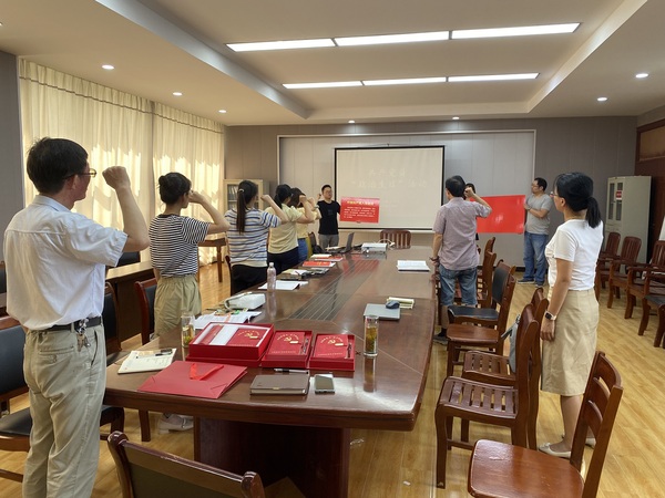 活动包含忆初心、送贺卡、温誓词三个环节。过“政治生日”的党员围绕成长经历、回忆入党初心、讲述工作感悟。骆宗雄同志分享了从上世纪80年代到今天的工作历程,提醒大家要踏踏实实多做事、做实事,作为一名教育者牢记并做到学高为师、身正为范,并表示与大家一起过“政治生日”非常难忘,加强党性修养、牢记共产党员身份和初心使命是共产党员永恒不变的主题;刘冬同志分享了自己的入党故事,承诺在今后的工作和生活中会时刻以党员标准严格要求自己,切实发挥共产党员的先锋模范作用。第一党支部书记带领大家向党旗庄严宣誓,铮铮誓言不断叩问初心,提醒每一位党员同志要时刻践行党的宗旨,永葆忠诚干净担当的政治品格,以实际行动兑现对党的庄严承诺。