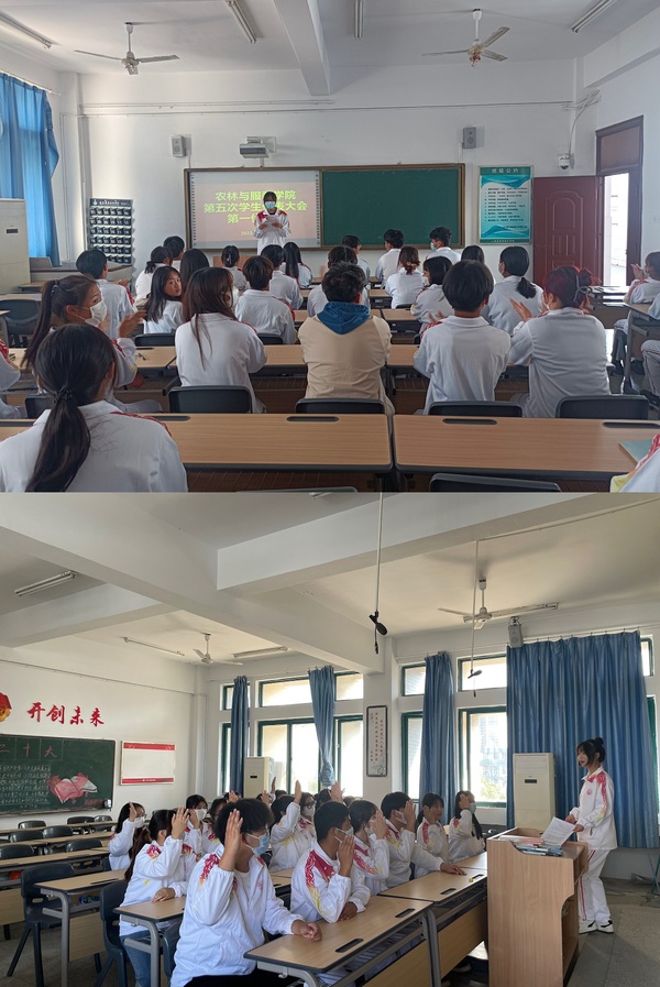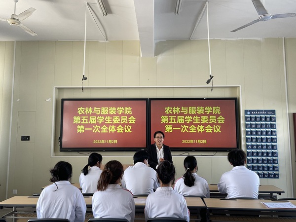 11月2日,农林与服装学院第五次学生代表大会在二号教学楼316教室顺利召开。学院党总支副书记许咏梅、团总支书记唐玲、校学生会主席王梦辉及各分团代表共五十余人参加大会,大会在庄严的国歌声中开幕。